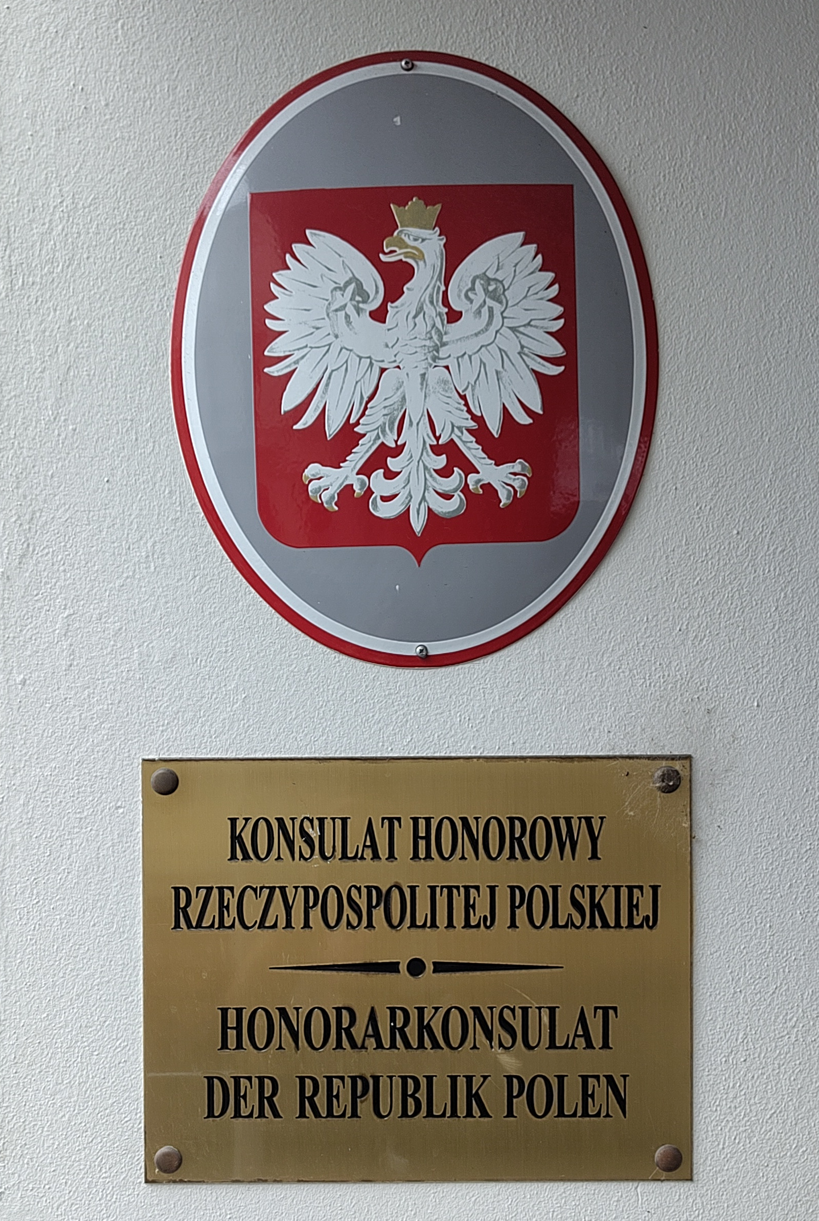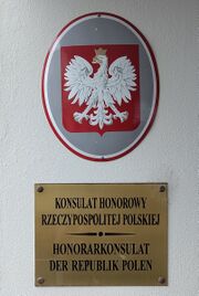 | 11:10, 17. Aug. 2025 | Honorarkonsulat Polen.jpg (Datei) | 1,32 MB | {{Infobox Foto |Name = Polnisches Honorarkonsulat |Beschreibung = Polnisches Honorarkonsulat in Linz, Mozartstraße |Urheber = Christian Wirth (Benutzer:Wirthi) |Datum = 2025 |Ort = |Lizenz = {{CC-BY-SA}} }} {{Bildkategorie|Konsulat}} {{Bildkategorie|Bezirk Innere Stadt}} | 1 | |