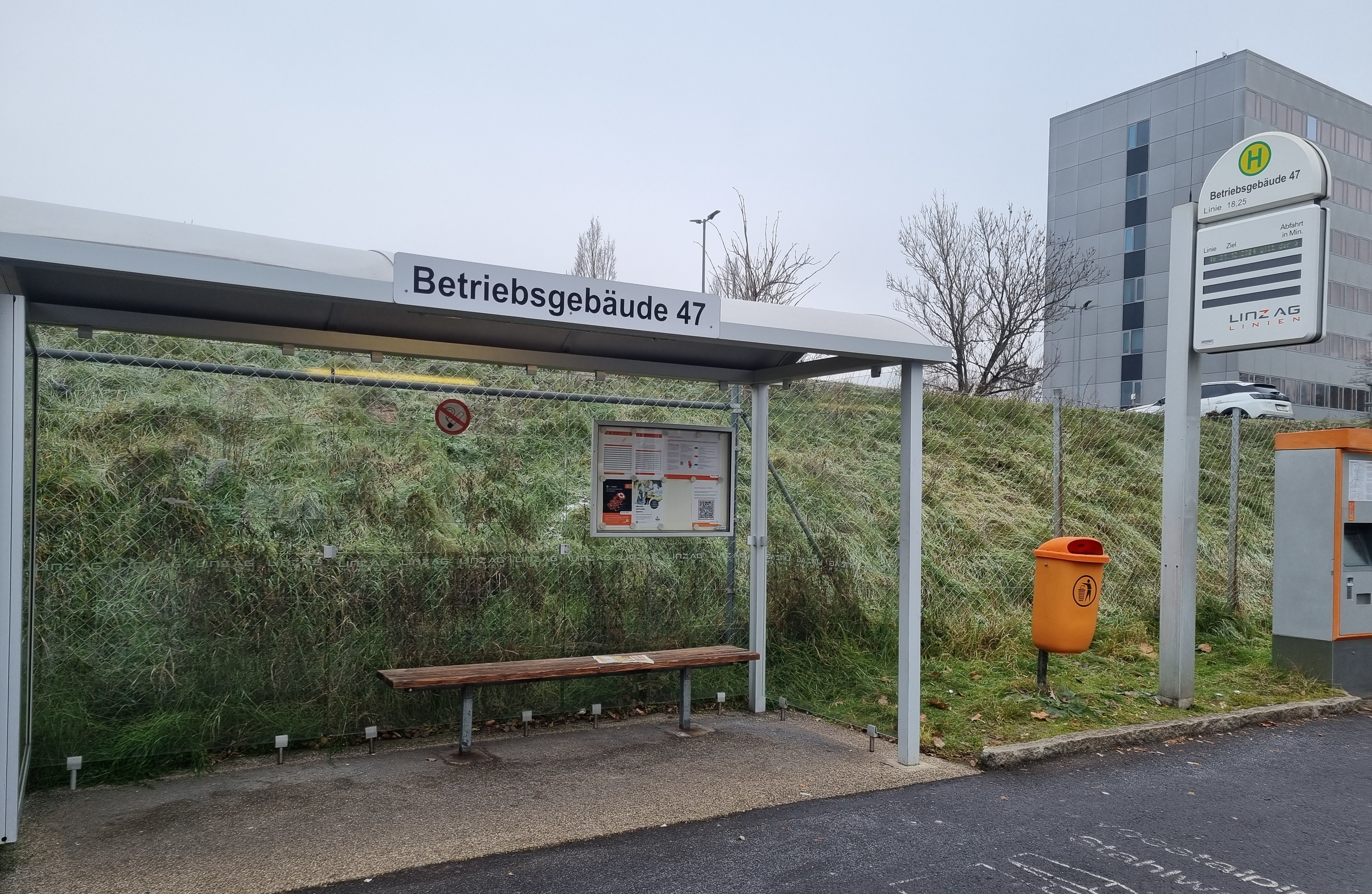 | 13:47, 1. Jän. 2025 | Haltestelle Betriebsgebäude 47 2024.jpg (Datei) | 4,03 MB | {{Infobox Foto |Name = Haltestelle Betriebsgebäude 47 |Beschreibung = Haltestelle Betriebsgebäude 47, Wartehäuschen an der Turmstraße Fahrtrichtung Turmstraße/Oed. |Urheber = Christian Wirth (Benutzer:Wirthi) |Datum = 2024-12 |Ort = |Lizenz = {{CC-BY-SA}} }} {{Bildkategorie|Haltestelle}} {{Bildkategorie|Bezirk Industriegebiet-Hafen}} | 1 | |