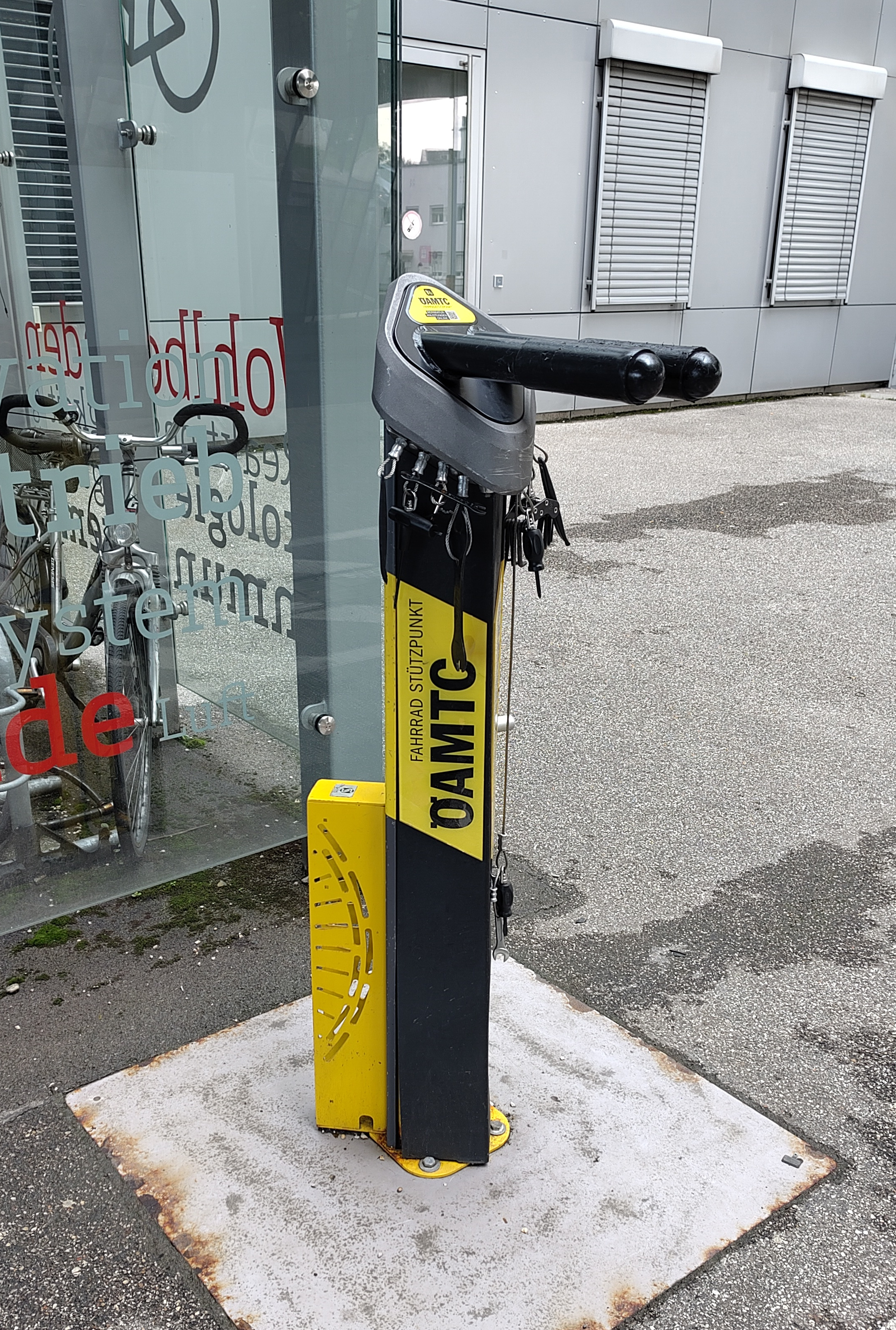 | 11:13, 17. Aug. 2025 | ÖAMTC Fahrradstützpunkt MED-Campus.jpg (Datei) | 2,79 MB | {{Infobox Foto |Name = ÖAMTC-Fahrradstützpunkt |Beschreibung = ÖAMTC-Fahrradstützpunkt, hier beim MED-Campus III/Med Campus IV |Urheber = Christian Wirth (Benutzer:Wirthi) |Datum = 2025 |Ort = |Lizenz = {{CC-BY-SA}} }} {{Bildkategorie|Fahrrad-Verkehr}} {{Bildkategorie|Bezirk Kaplanhof}} | 1 | |