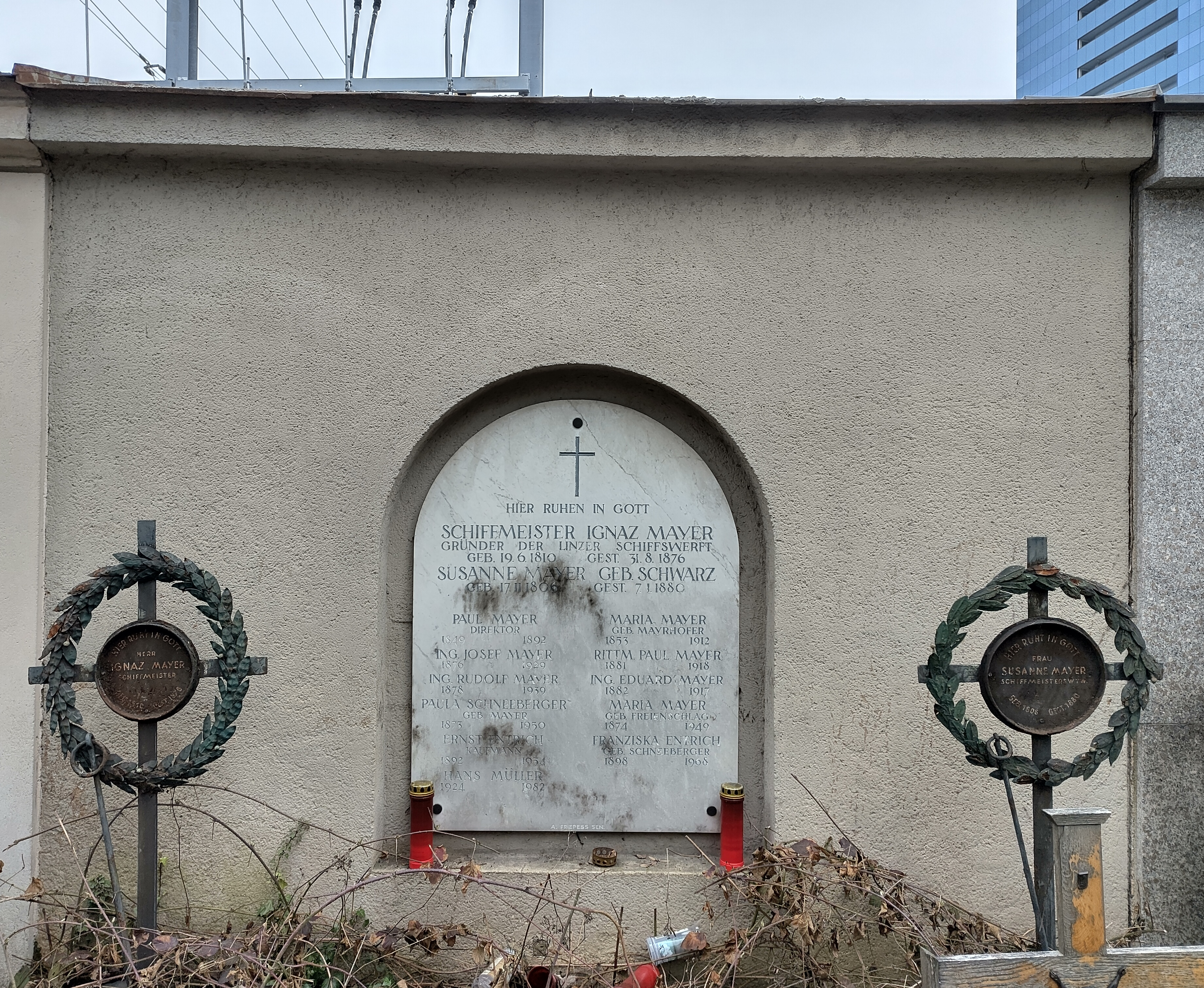 | 10:30, 17. Aug. 2025 | Familiengrab Ignaz Mayer.jpg (Datei) | 4,63 MB | {{Infobox Foto |Name = Familiengrab Mayer |Beschreibung = Familiengrab Mayer, unter anderem Ignaz Mayer, am Barbarafriedhof. |Urheber = Christian Wirth (Benutzer:Wirthi) |Datum = |Ort = Barbarafriedhof |Lizenz = {{CC-BY-SA}} }} {{Bildkategorie|Grab am Barbarafriedhof}} | 1 | |