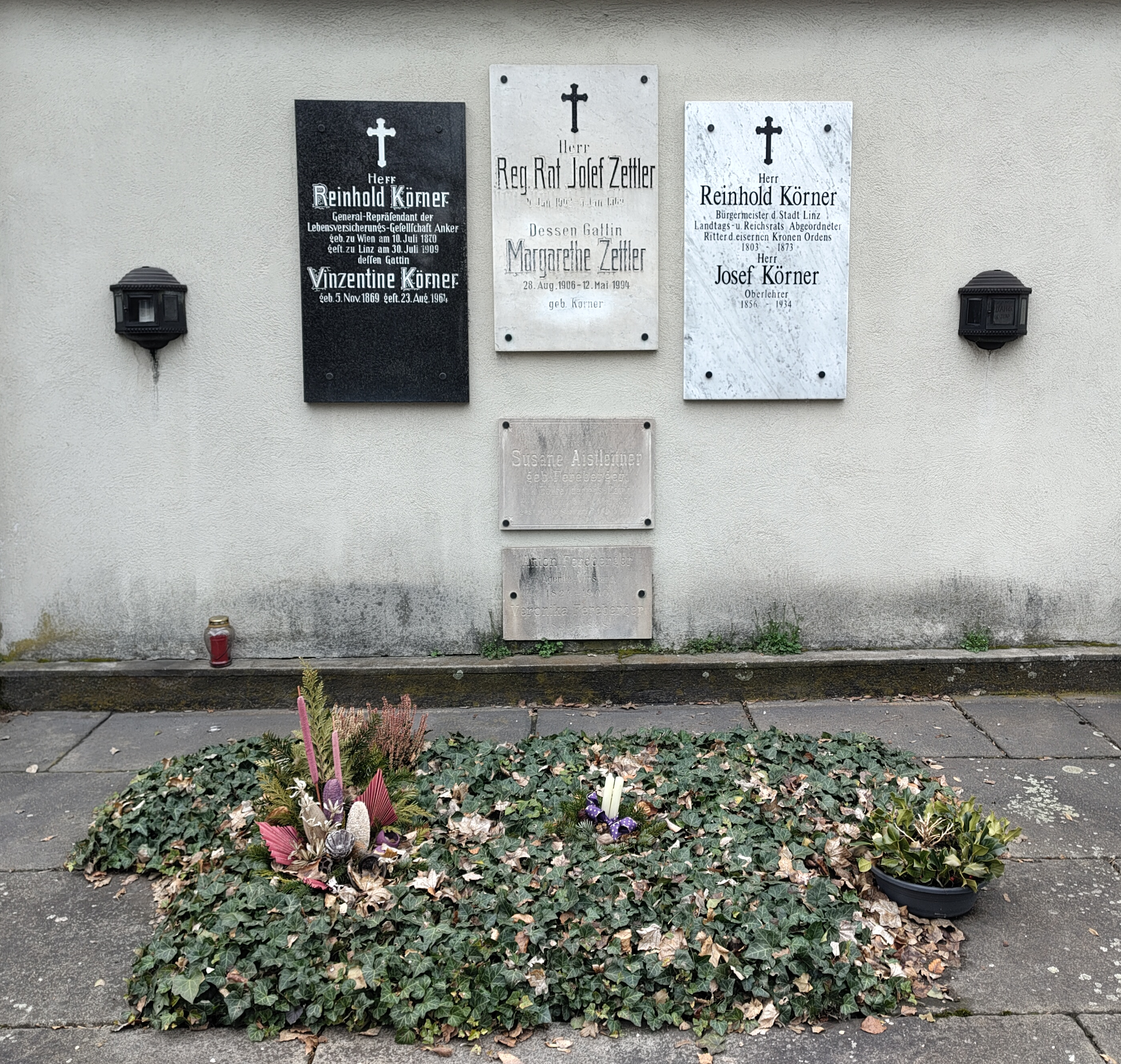 | 10:30, 17. Aug. 2025 | Familiengrab Reinhold Körner.jpg (Datei) | 2,95 MB | {{Infobox Foto |Name = Familiengrab Körner |Beschreibung = Familiengrab Körner, unter anderem Reinhold Körner, am Barbarafriedhof. |Urheber = Christian Wirth (Benutzer:Wirthi) |Datum = |Ort = Barbarafriedhof |Lizenz = {{CC-BY-SA}} }} {{Bildkategorie|Grab am Barbarafriedhof}} | 1 | |